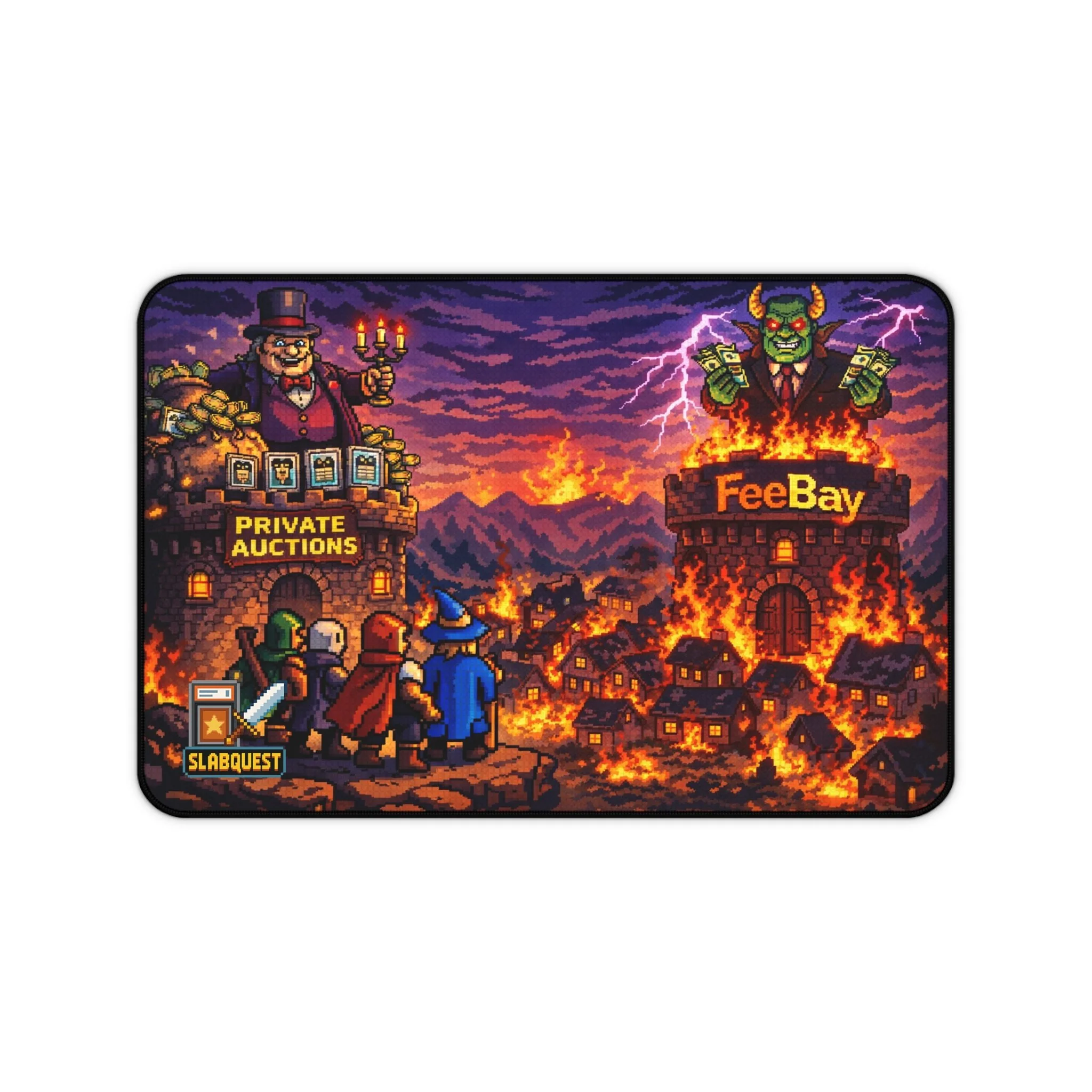 Fantasy Pixel Desk Mat — 'FeeBay' Market vs Private Auctions Gaming Mousepad