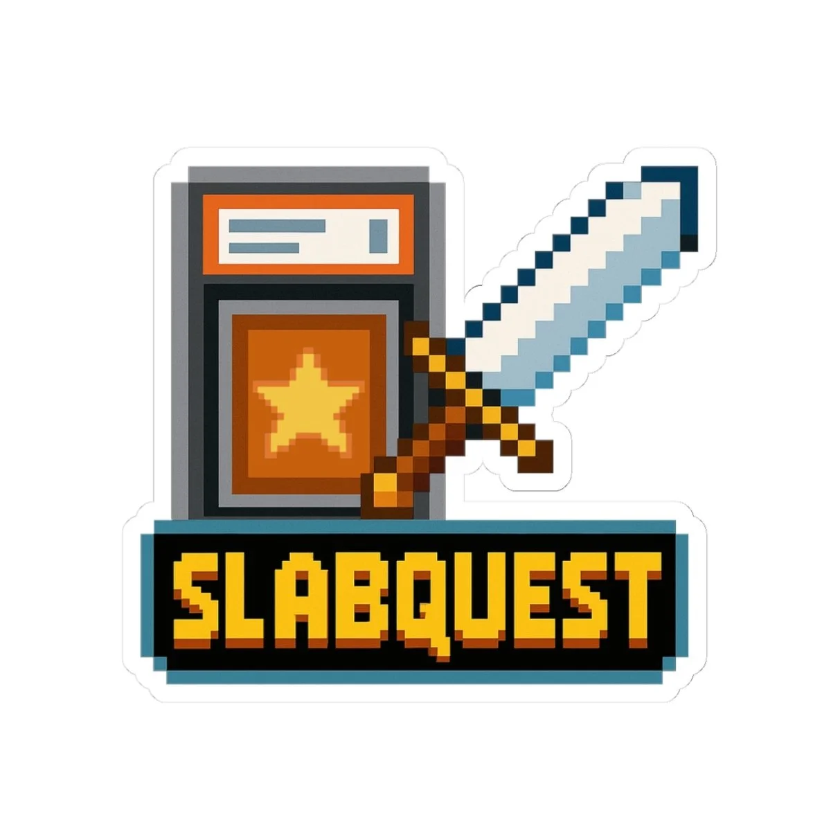 Hand-cut glossy vinyl stickers that bring retro pixel-art energy to your gear. This design pairs a classic RPG sword and cartridge motif with bold, blocky lettering — a nostalgic nod to late-night quests and indie game jams. Stick one on a laptop, controller case, or sketchbook to mark your space as belonging to a player, creator, or collector who loves low-res charm and big personality. The glossy finish makes colors pop and the strong adhesive holds smooth, flat surfaces while you focus on leveling up. Sized options and white or transparent backgrounds let you choose how the art blends with your setup.